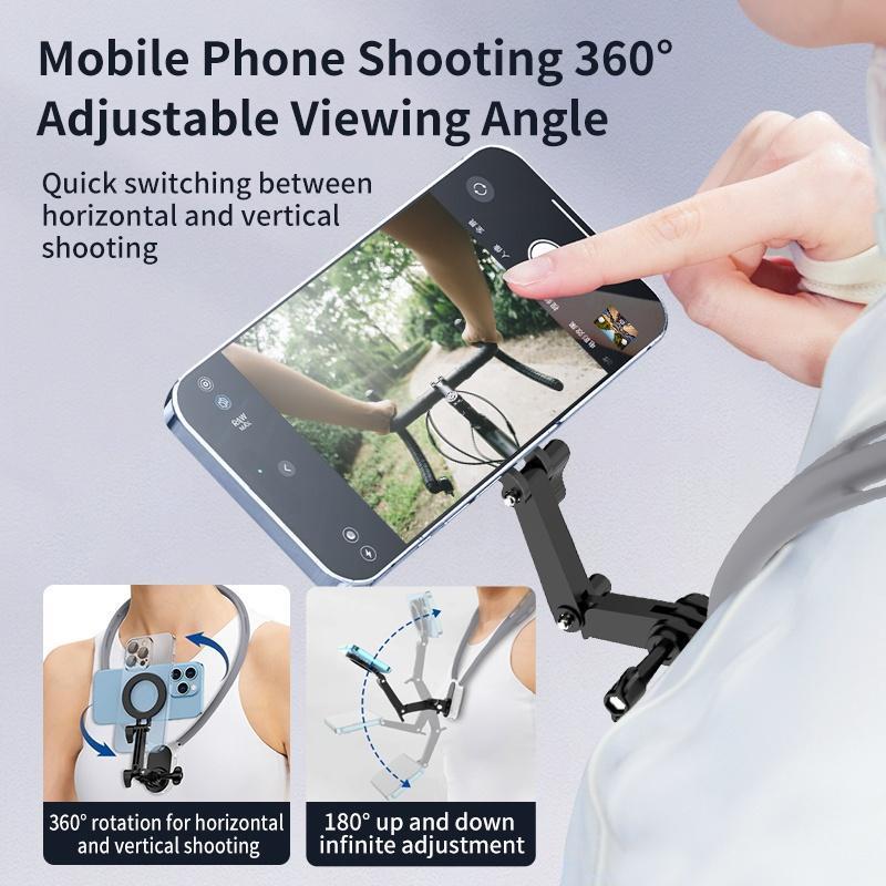 Neck Camera/Phone Holder for Recording, Magnetic Neck Chest Cellphone Mount for Camera Mobile Phone, Hands-Free POV Cell Phone Necklace Holder for Iphone & Android Phones & Sports Camera, Smartphone Stand, Phone Accessories